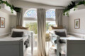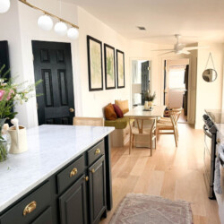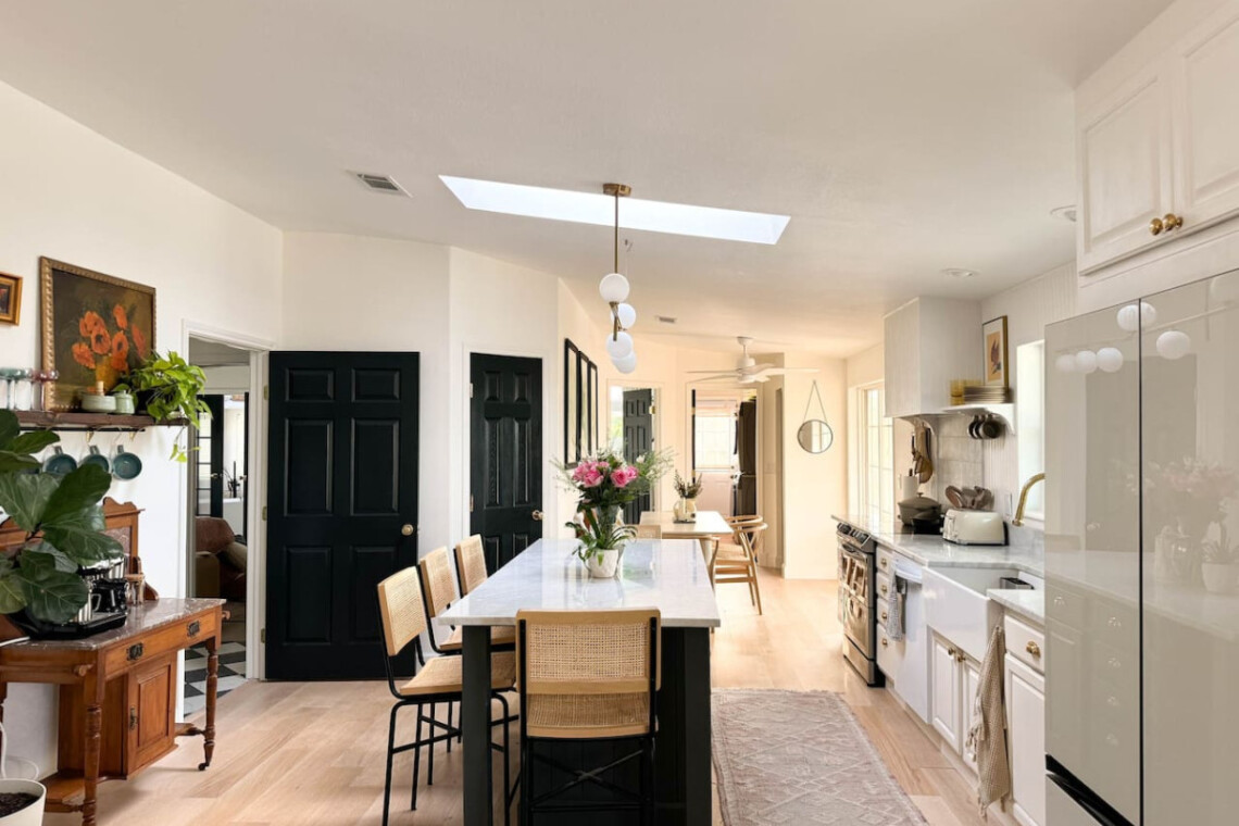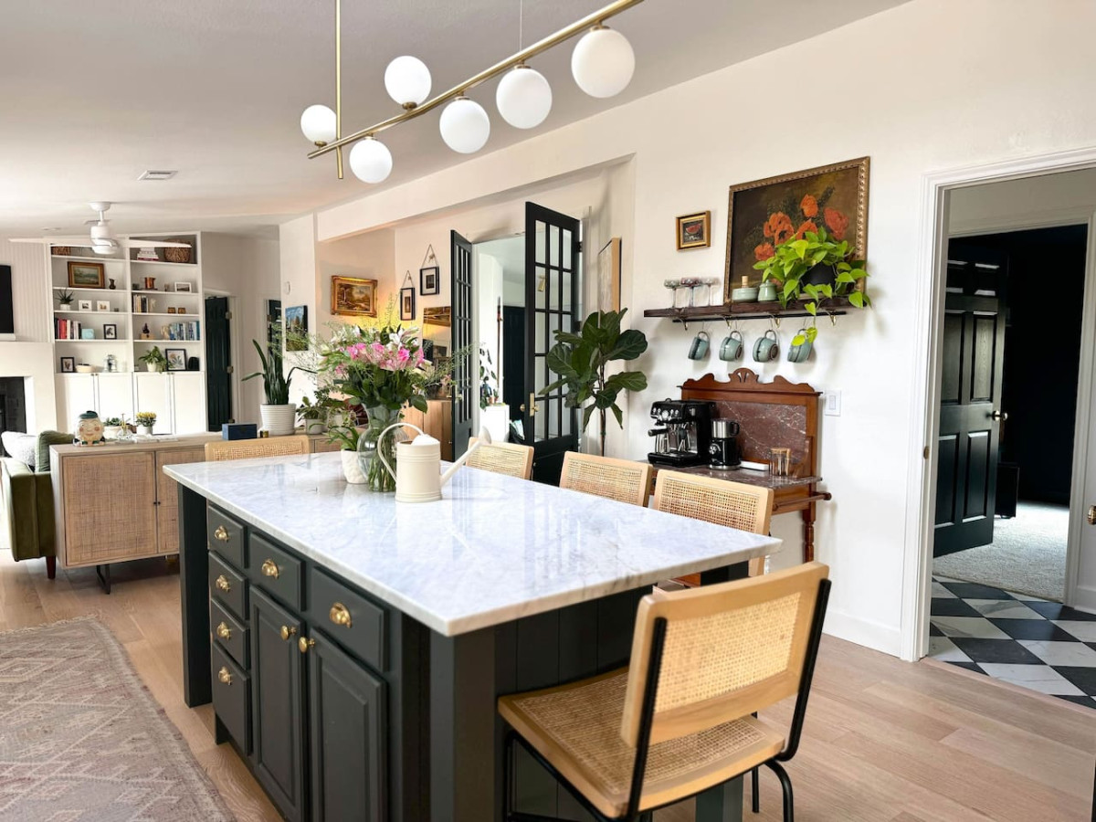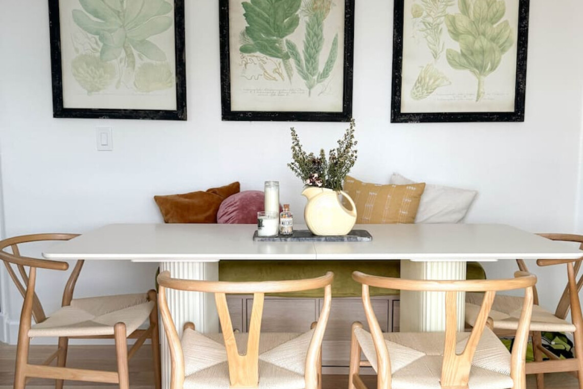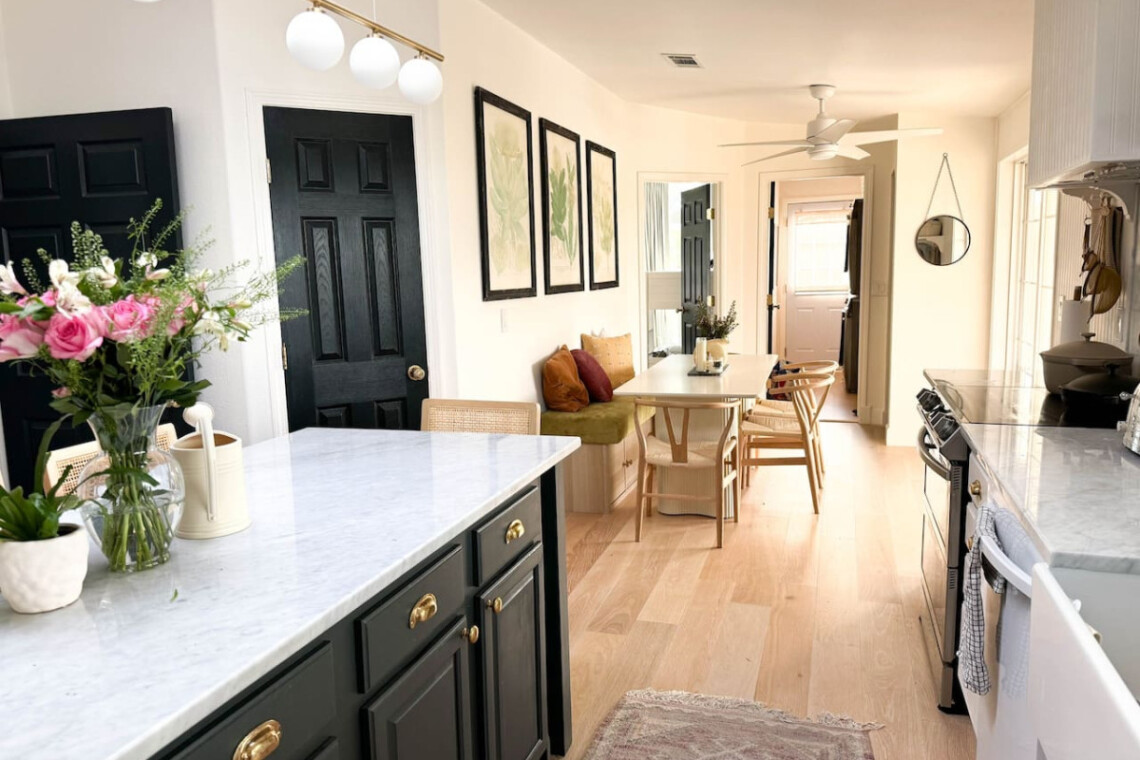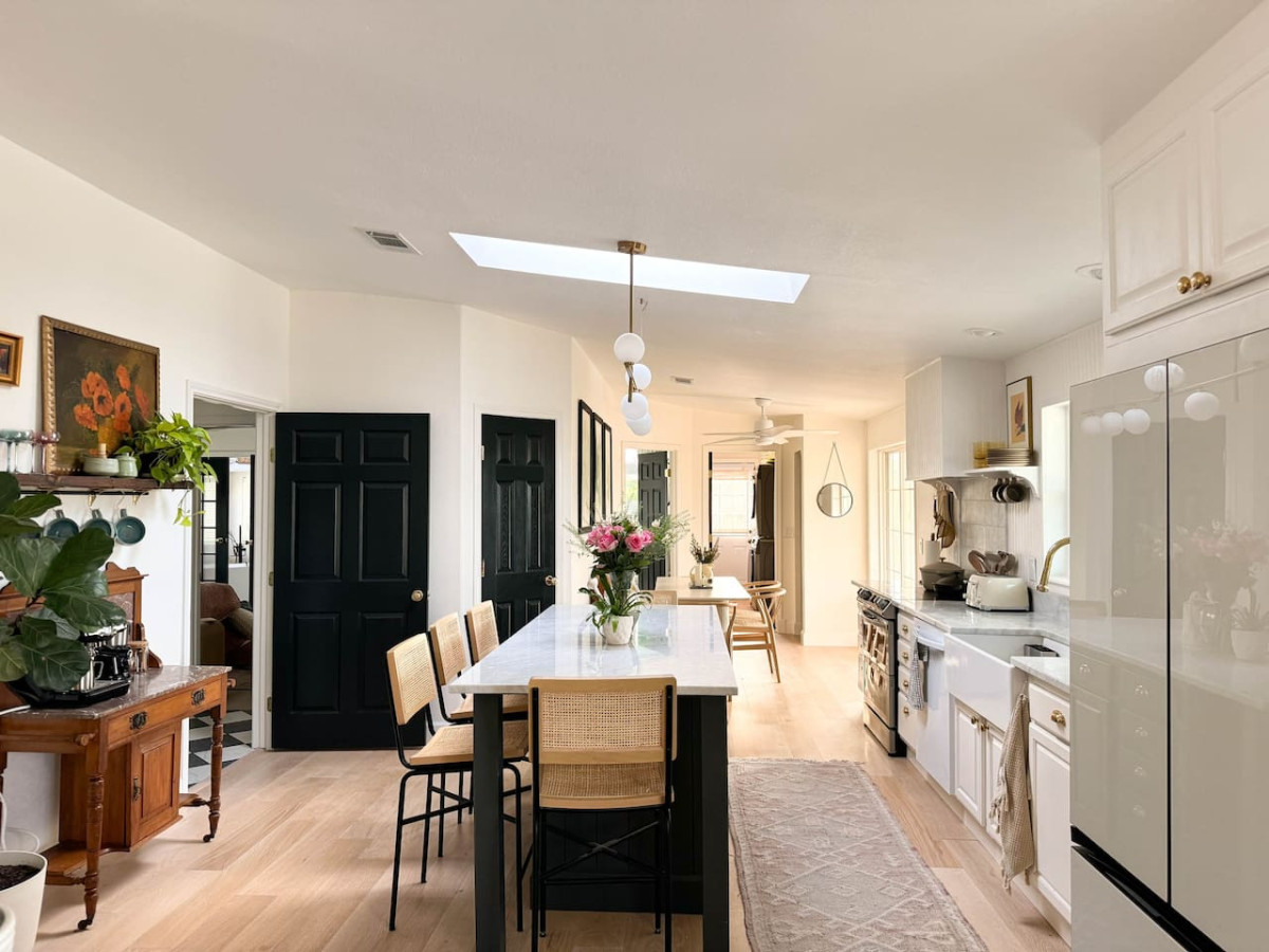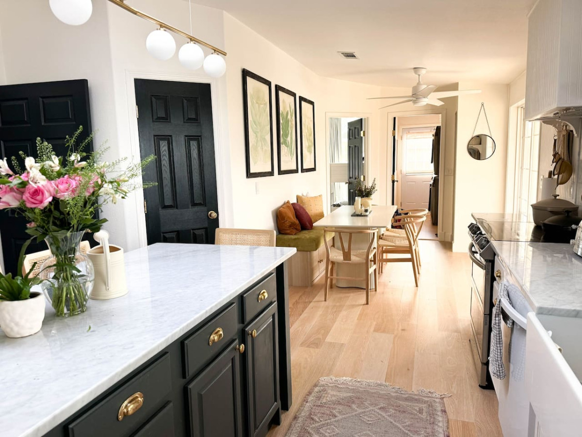 While the kitchen island dining space accommodates 5 guests, the dining table banquette seats an additional 7.