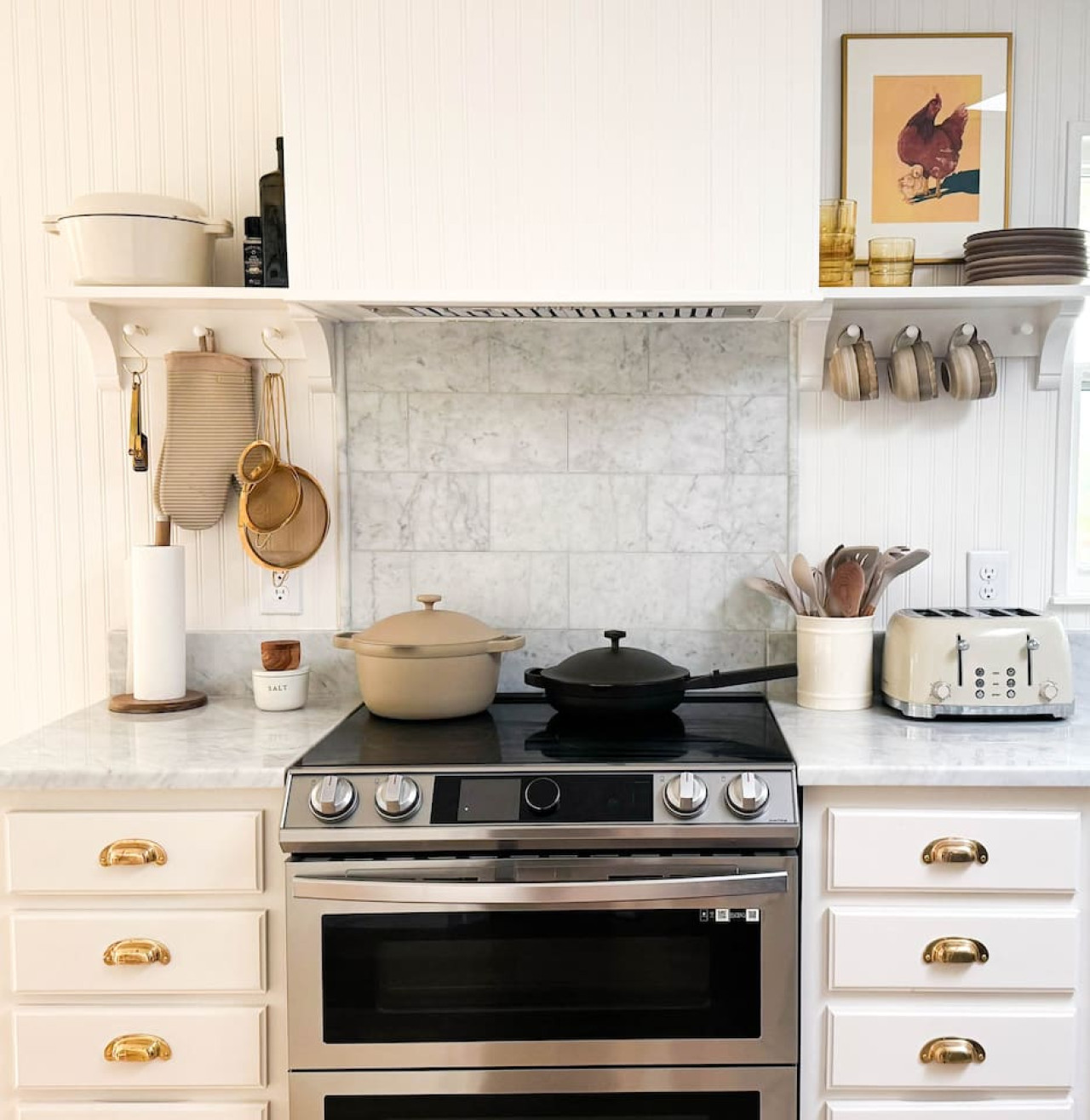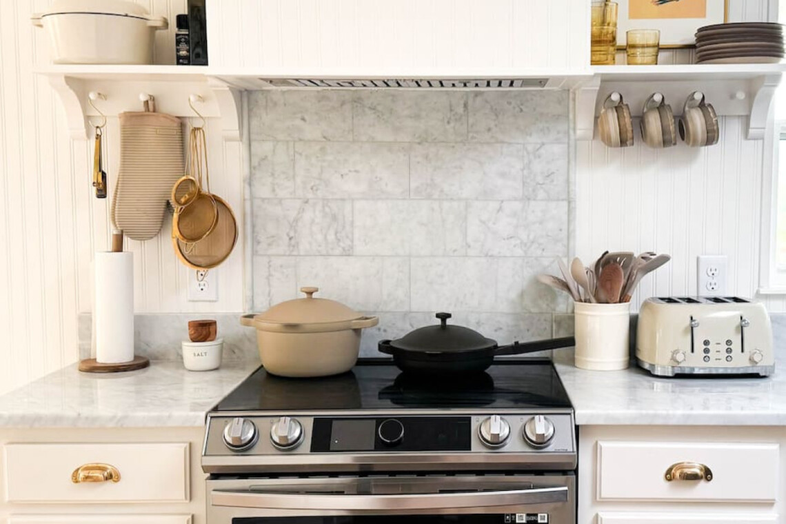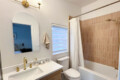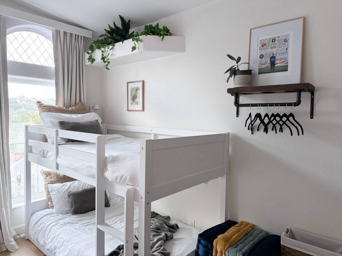 The open kitchen features marble countertops, a huge kitchen island for entertaining, a dishwasher, and a dual electric oven and stove, guaranteeing ease for all your cooking endeavors. Accommodating seating for 5, it’s the perfect arrangement for entertaining guests or group cooking! The pantry contains a highchair that can be attached to one of the counter stools for little ones to join in on the fun.