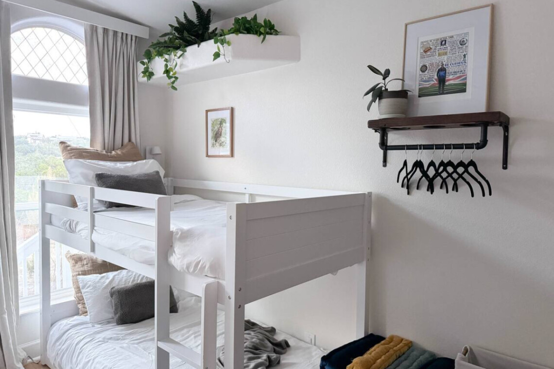 Fox Creek sits on just over 4 acres of private property with a wet weather creek at the bottom and a view over a rolling valley with spectacular sunsets. You’ll see all manner of wild creatures on the property, including foxes, roadrunners, and deer. The house is 2,464 square feet with 3 bedroom suites (each with its own bathroom and walk-in closet), one bunkroom, 2 separate living areas, a full kitchen with marble countertops, a half bath, a full laundry, and a dedicated working space in a bright, airy foyer.