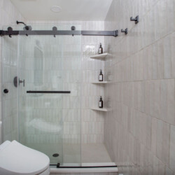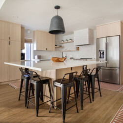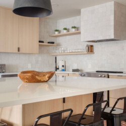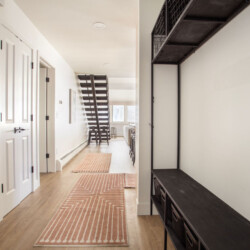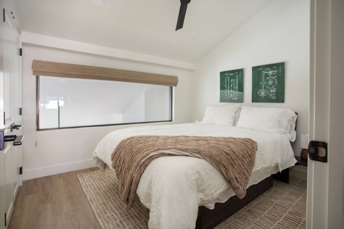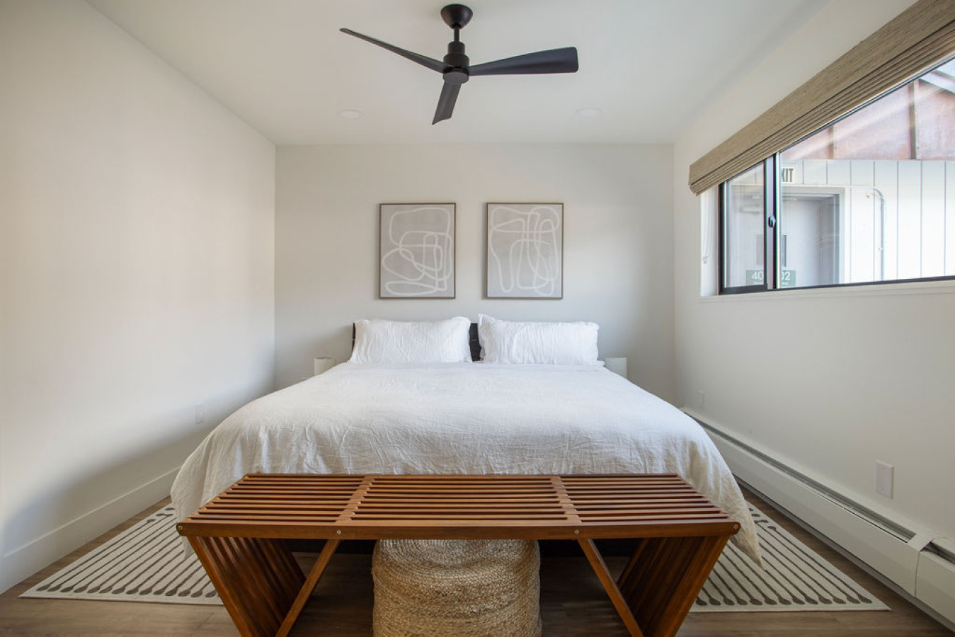 The chef-inspired kitchen embraces a Scandinavian sensitivity, while possessing all the modern niceties necessary for serious food preparation, including Kitchen Aid appliances, a Crockpot, Instapot, Sous Vide, griddle, waffle-maker, and two coffee makers (K Cup and pot version). The 42-square foot dining surface comfortably seats 12 and sits under a perfectly appointed pendant. The living room sports the perfect mountain couch, chosen to specifically fit the room. Lounge next to the oversized slope-side window reading a book, watching a game or listening to laughter from the villagers below. Of course, apres skiing at Copper while staying in Copper Junction provides the ultimate in leisure and convenience. Just below the condo sits Eagle BBQ dishes smoked brisket rivaling anything coming out of Texas. From the living room, the beautiful custom stairs lead you into the upstairs family area with a 12-foot pitched ceiling. Two bedrooms with storage beds and custom closets sit adjacent to two modern bathrooms with artisan tile. The European-inspired sink allows for maximum efficiency of this family space, and the custom bunk beds are each equipped with a plug and an individual light for optimized privacy and comfort.