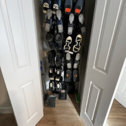 The owners of this condo wanted to think of everything. Leave your skis in the private locker room or in the ski racks outside the condo. Enter through the front door and stow your helmet, gloves, and goggles in your designated cubby, and hang your jacket in the custom-designed gear storage area. The ski-boot dryer in the utility closet dries your boots from their last use, provides nice storage, and allows you to heat them just prior to donning them the next day.
