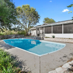 The backyard is undoubtedly the star of this home. The expansive screened porch is an outdoor lover’s dream, featuring a large farm table perfect for family meals or evening cocktails. Lounge comfortably with ceiling fans above, ensuring a pleasant atmosphere year-round. The porch opens seamlessly to the private pool area, where you can bask in the sun or take a refreshing dip. With an outdoor TV, this space is also perfect for game nights or relaxing evenings in.