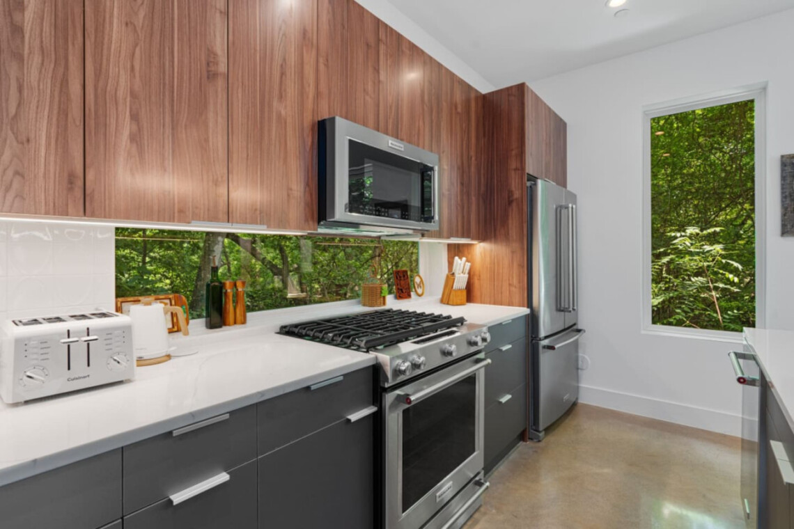 Welcome to your stylish retreat in trendy east Austin, Only 5 minutes from downtown! This BRAND NEW Modern 2-bedroom, 2.5 bathroom townhome will have you feeling like you are living in a treehouse that overlooks the greenbelt and small creek.
